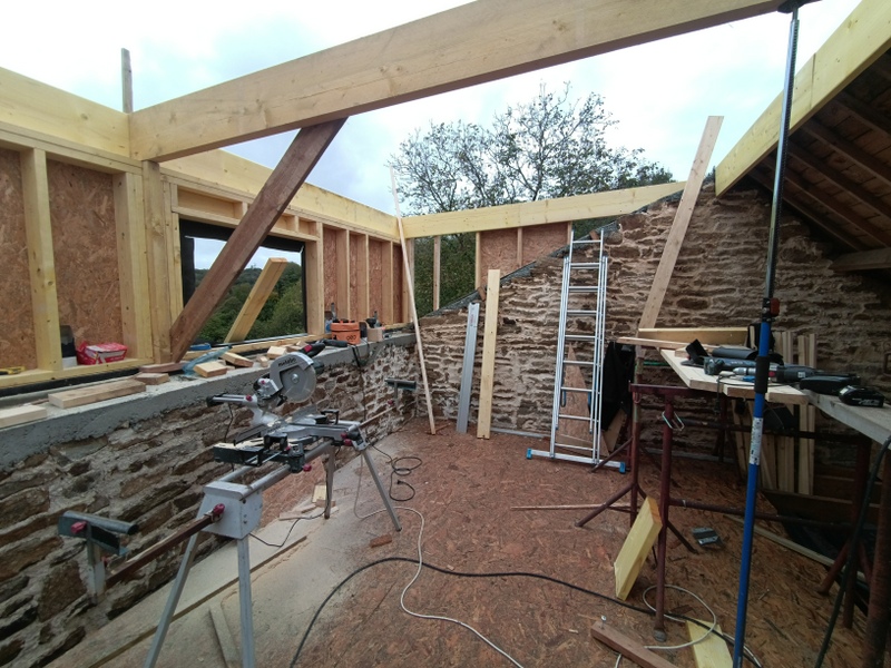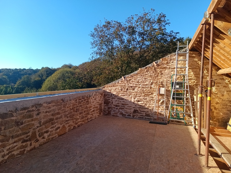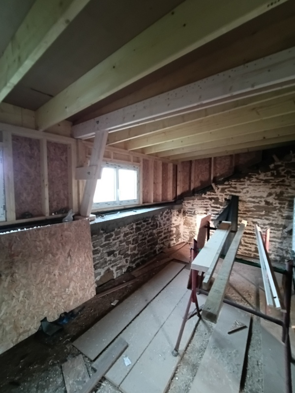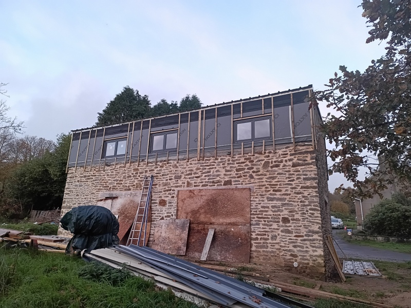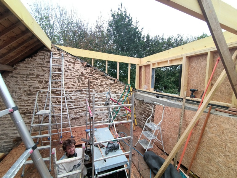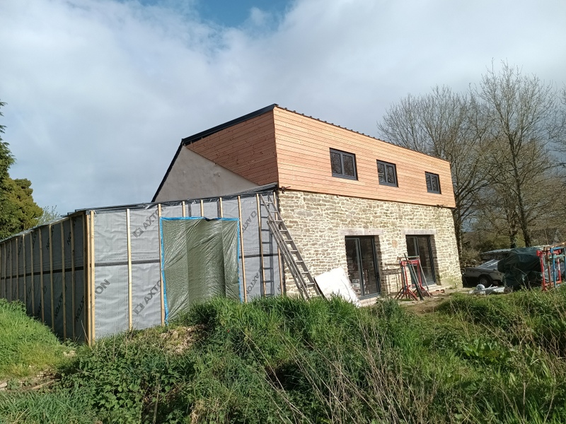 Le rampant Sud va disparaitre pour laisser place à une pente plus douce et une réhausse en ossature bois.