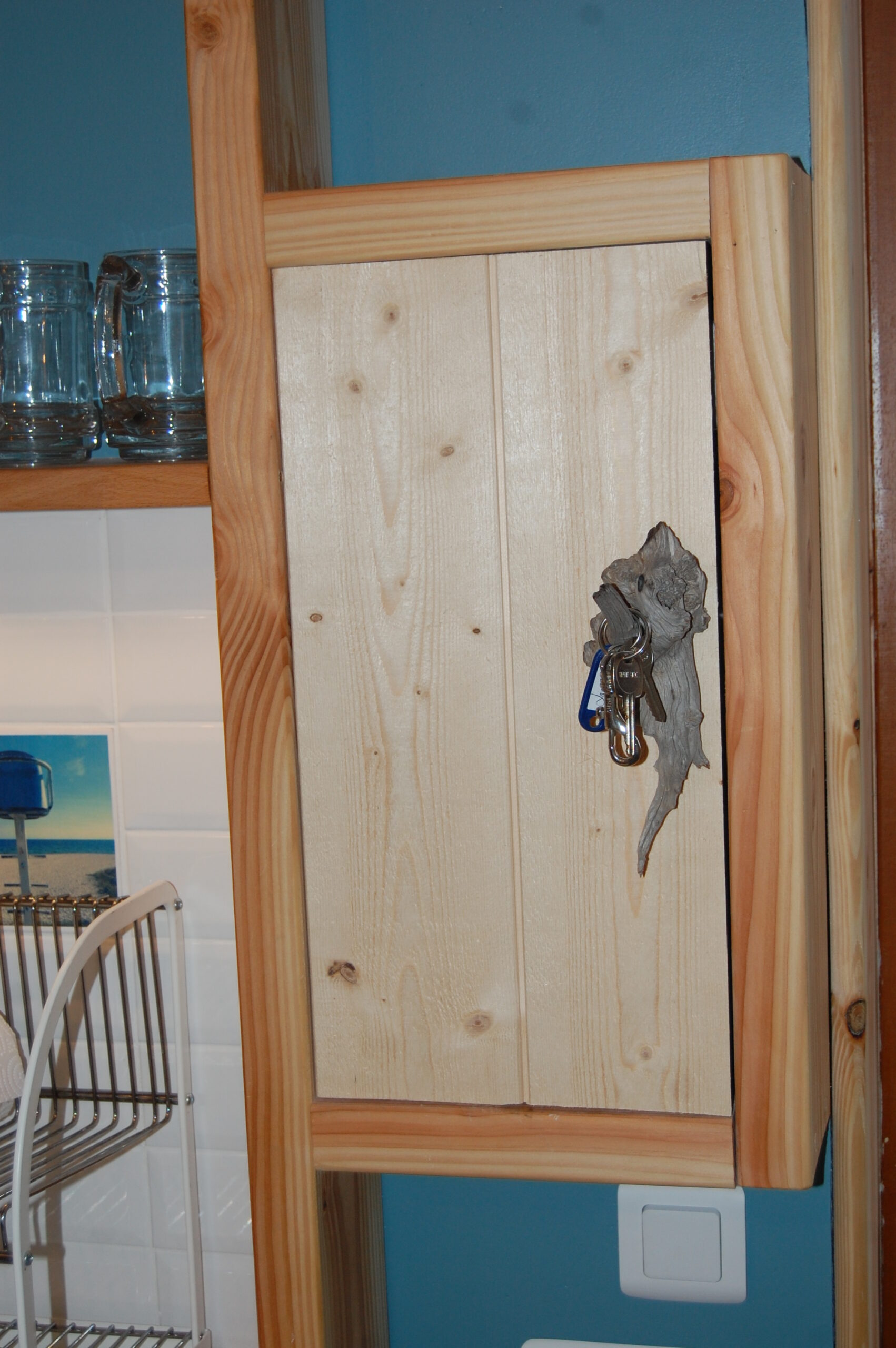 Case au bouton de bois flotté pour dissimuler le compteur électrique