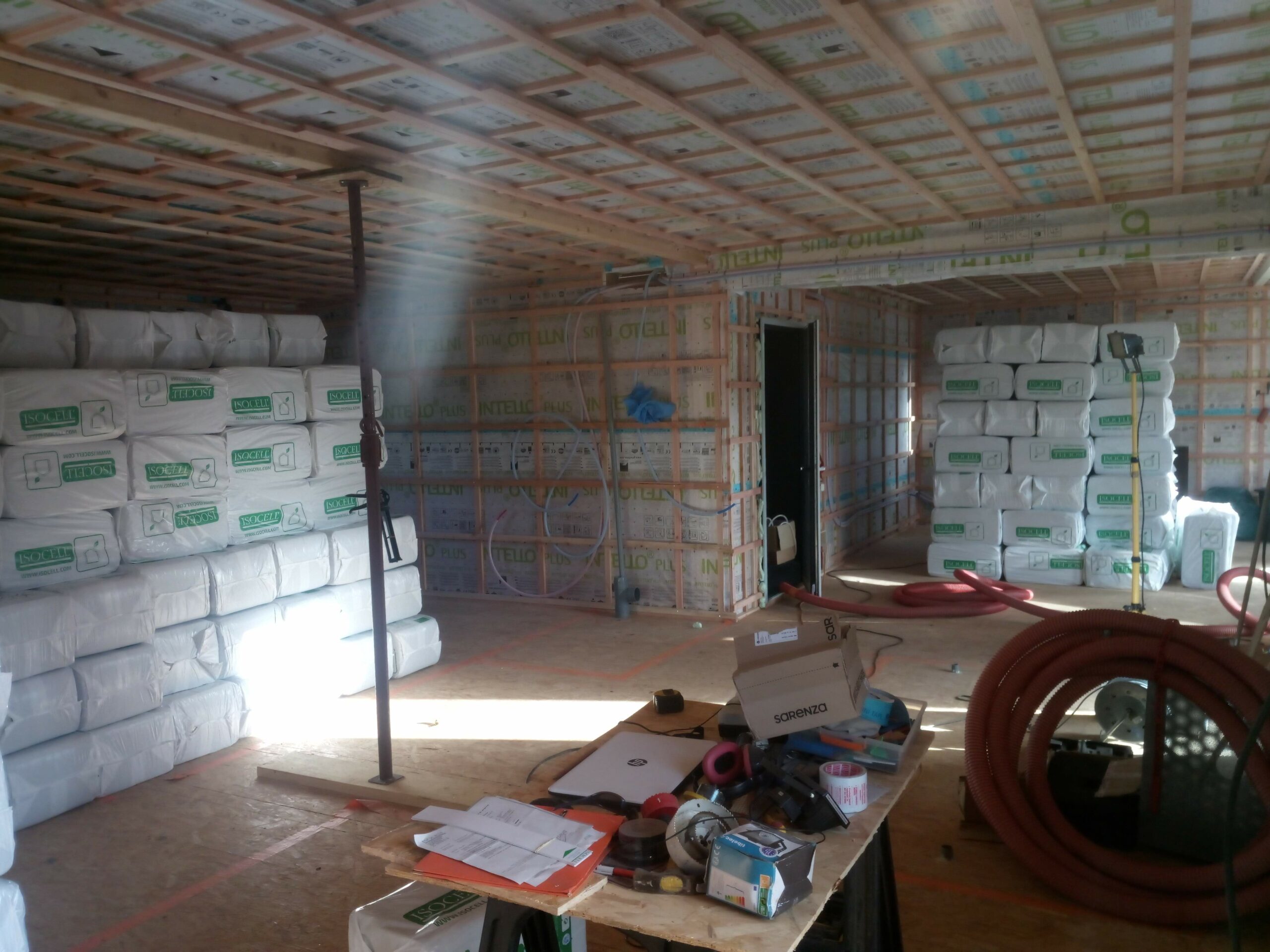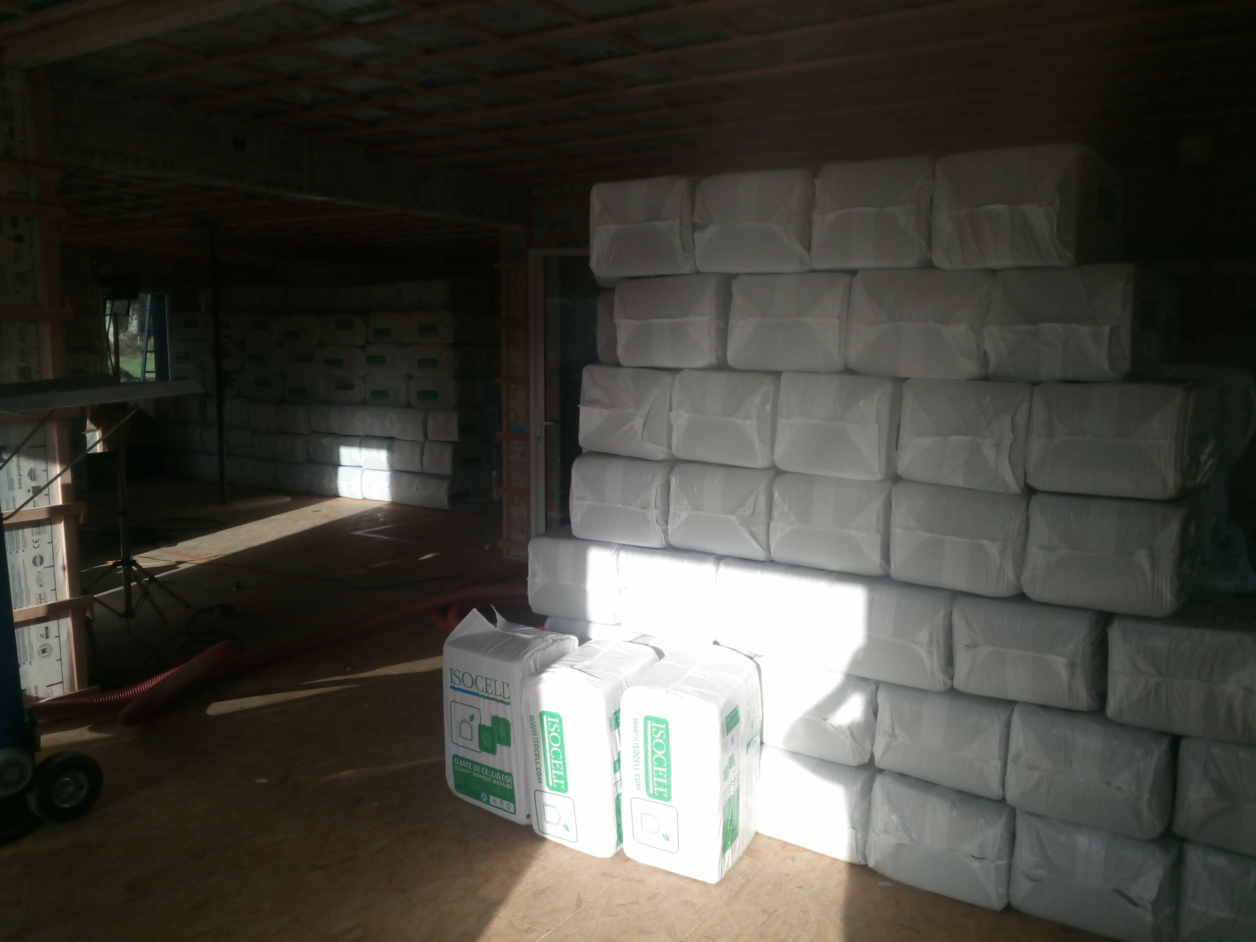 3200 Kg de ouate de cellulose Isocell ont investi la maison .